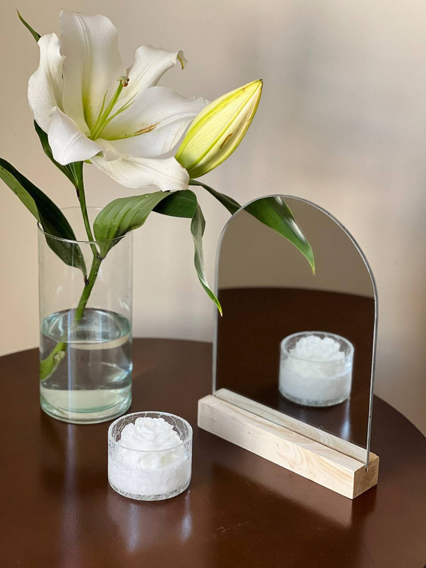 ايينه گنبدي ٢٠ در ٢٥ سانت پايه چوبي از جنس روس ارتفاع كل كار ٢٨ سانت موجود در ٢ رنگ پايه قيمت پايه ساده١٦٠ هزارتومان قيمت پايه رنچي ٢٠٠ هزارتومان